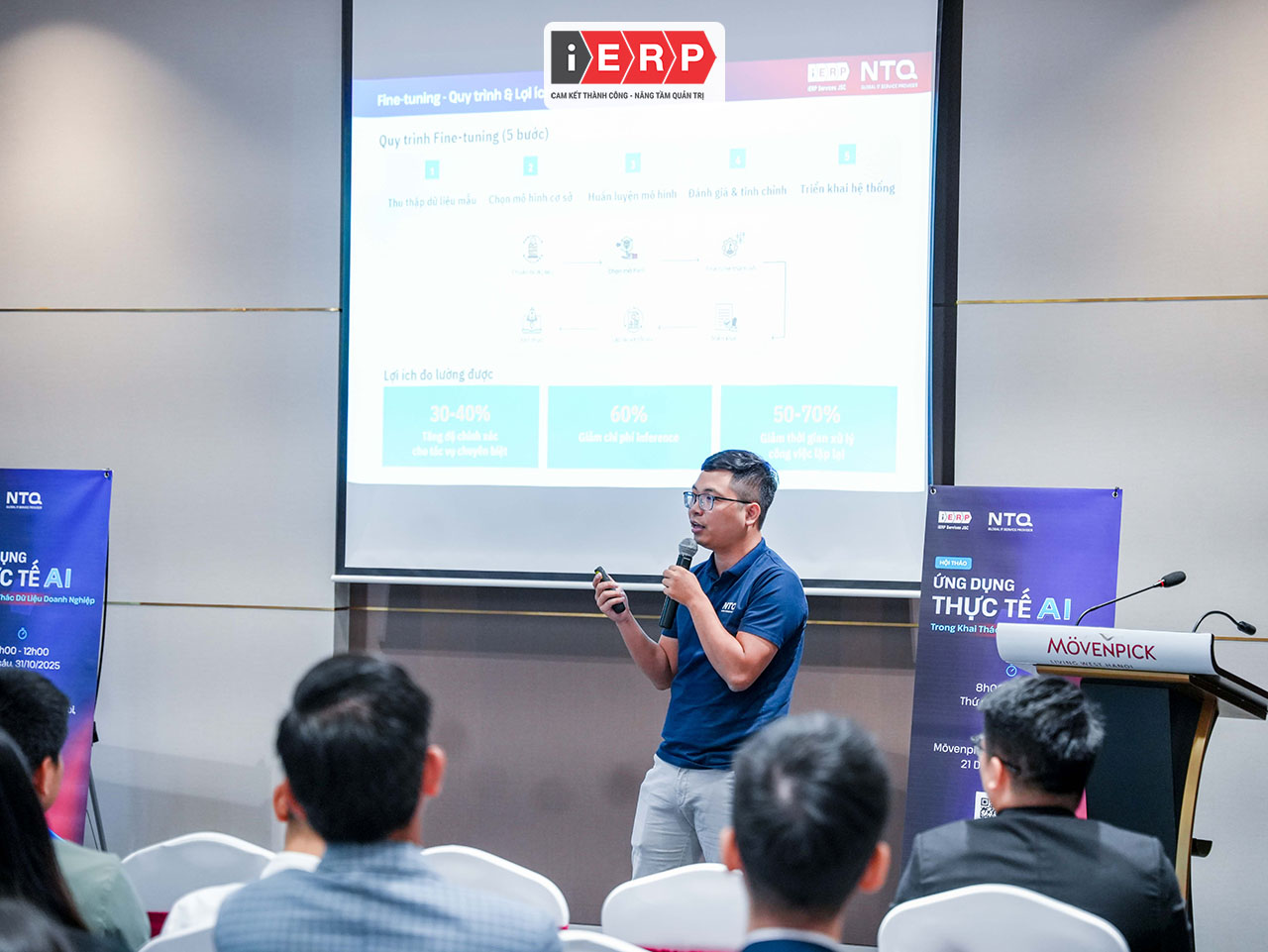 Ngày 31/10 tại Hà Nội, hội thảo “Ứng dụng thực tế AI trong khai thác dữ liệu doanh nghiệp” do iERP và NTQ phối hợp tổ chức đã diễn ra thành công, quy tụ đông đảo đại diện chuyên gia, nhà quản lý và lãnh đạo đến từ nhiều tập đoàn, doanh nghiệp lớn tại Việt Nam.