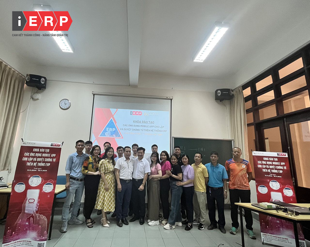 Trong bối cảnh chuyển đổi số đang trở thành xu thế tất yếu, việc ứng dụng các công nghệ hiện đại vào quản lý và vận hành là chìa khóa để nâng cao hiệu suất, giảm thiểu chi phí và gia tăng lợi thế cạnh tranh. Hiểu rõ nhu cầu này, iERP cùng Viện Công nghệ Vicem đã phối hợp thiết kế khóa đào tạo Tổng quan về ứng dụng di động cho lập và duyệt chứng từ trên hệ thống ERP, diễn ra trong 5 ngày từ 11-11-2024 đến 15-11-2024, dành riêng cho các Tổng công ty Xi măng Việt Nam (VICEM) và các đơn vị thành viên.